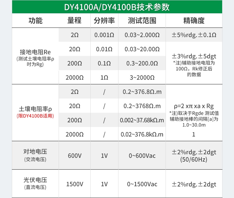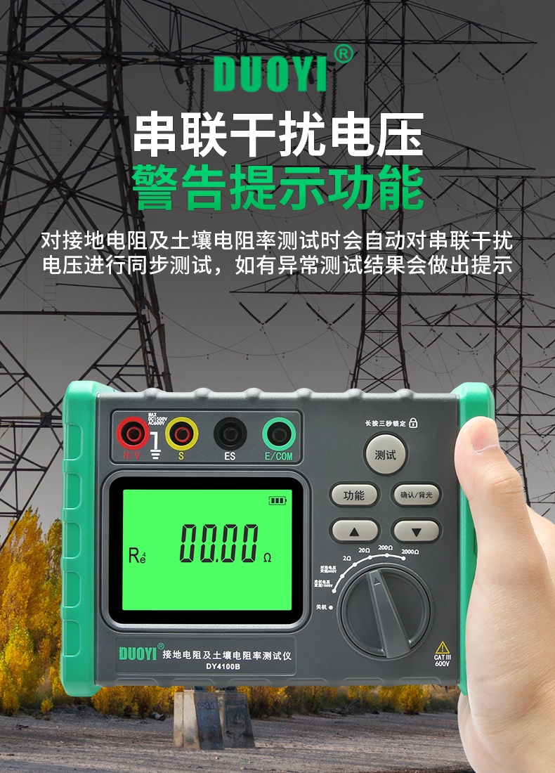 DY4100A/DY4100B接地电阻测试仪充电桩接地测量仪光伏电压防雷电阻仪